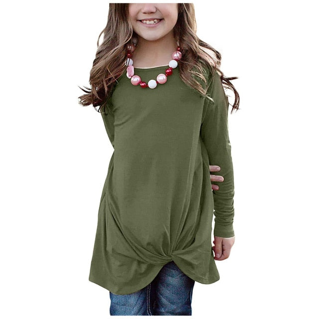 Model Number: Kids Girls Casual Tunic Tops Knot Front Long Sleeve Blouse T-Shirt Tee