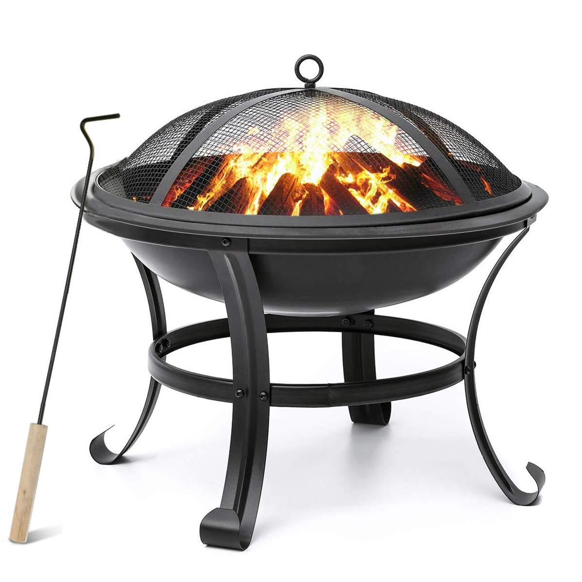 Outdoor Fire Pit - Wood Burning Steel BBQ Grill Bowl with Mesh cover