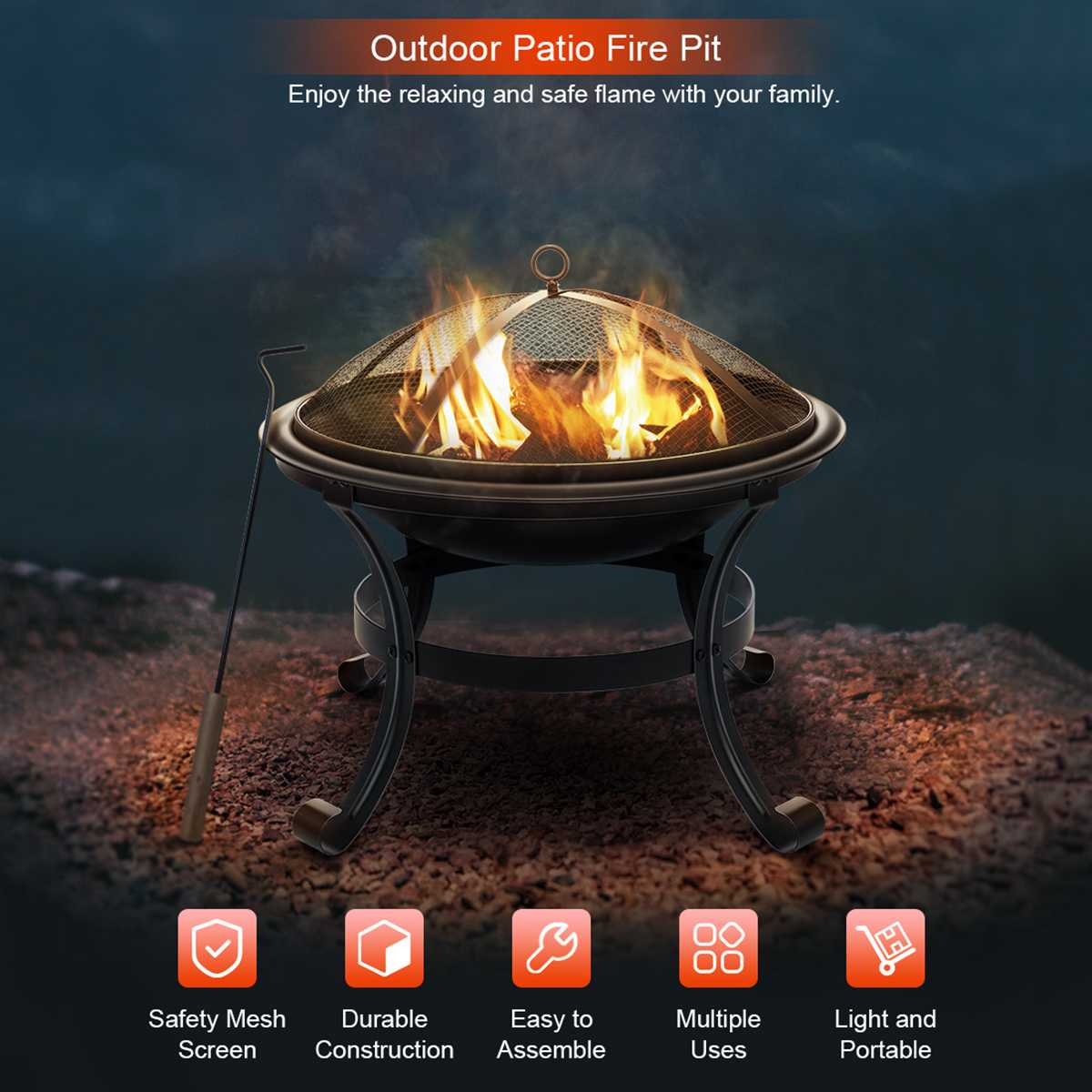 SAFE & RELIABLE - This patio fire pit comes with a spark screen and a fire poker, Fire pit cover avoid sparks, embers, and debris from flying out, while a wood-handled poker lets you safely move wood or charcoal.