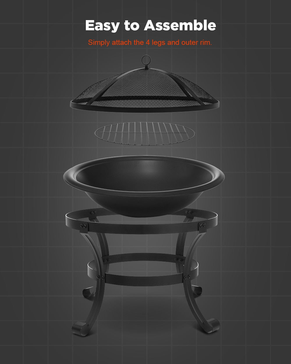 SATISFACTION GUARANTEE - Firepits for outside with installation operating instruction and tools. Simply attach the 4 legs and outer rim and you are ready to create cozy memories in the backyard or while camping. This wood burning fire pit has worry-free after-sales service